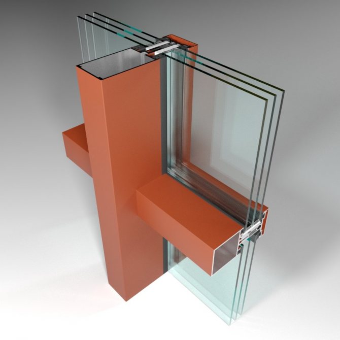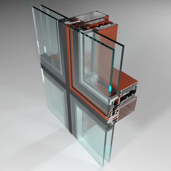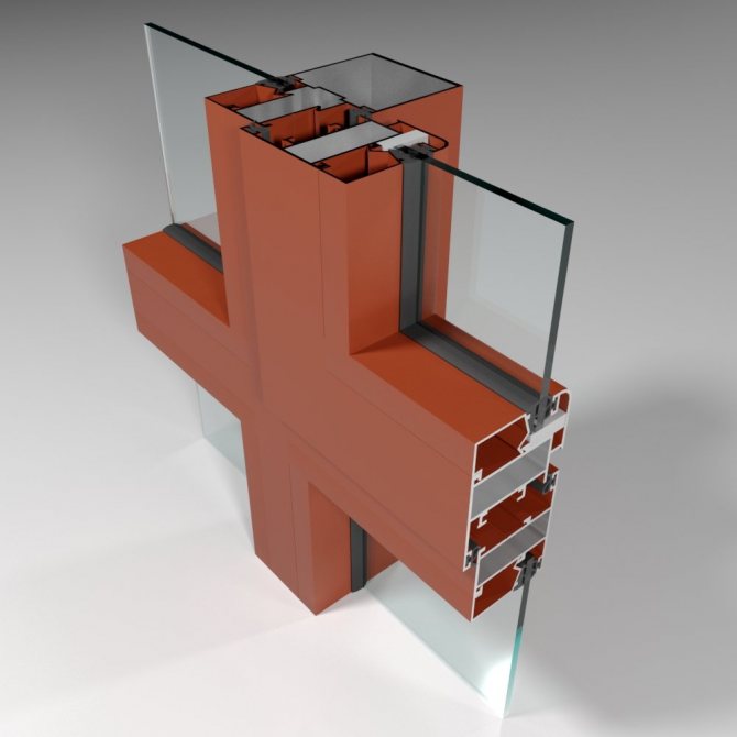 Caractéristiques techniques: les cloisons sont des structures à ossature qui sont assemblées à partir d'éléments préparés (racks, barres transversales et unités de séparation typiques) sur le site d'installation ou peuvent être montées avec des châssis prêts à l'emploi assemblés en usine. Les crémaillères et les poutres sont interconnectées à l'aide de profilés spéciaux en aluminium. Le verre (ou autre remplissage) est fixé dans le cadre ou le châssis avec des doublures en polyéthylène et fixé avec des parcloses.