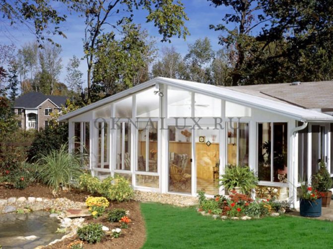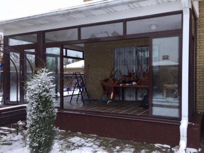 - Ils sont conçus pour protéger les cuisines d'été situées dans les chalets d'été. Vitrage de la véranda, la construction d'un gazebo à partir d'un profil est possible.