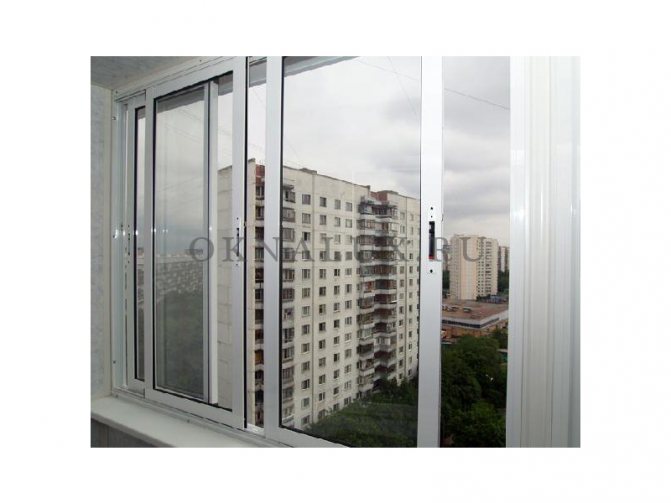 Un système à trois et deux voies est utilisé pour vitrer le balcon. Le premier a 3 rails et le second - 2. Les feuilles se déplacent le long des guides.