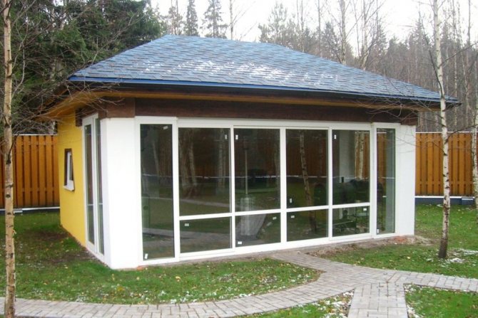 L'installation de la structure implique une livraison sous forme démontée, ce qui simplifie et accélère le processus. Un système de fenêtre coulissante convient pour augmenter la surface utilisable de la pièce. Principaux avantages : coût, durée de vie jusqu'à 50 ans, seuls des matériaux respectueux de l'environnement sont utilisés pour la fabrication.