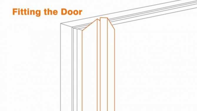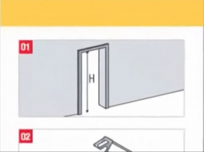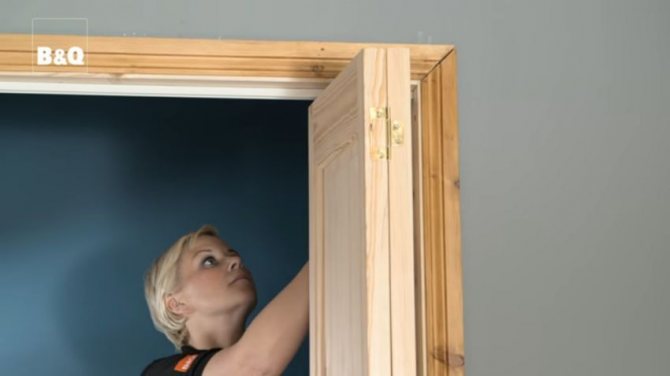 Attention. La porte préparée pour l'installation doit être plate sur tout le périmètre. L'erreur dans le chevauchement supérieur est autorisée, mais pas plus de 5 mm. Ceci est déterminé par le niveau. Les côtés doivent être strictement parallèles les uns aux autres et de la même épaisseur sur toute la hauteur - sans rétrécissement ni élargissement.