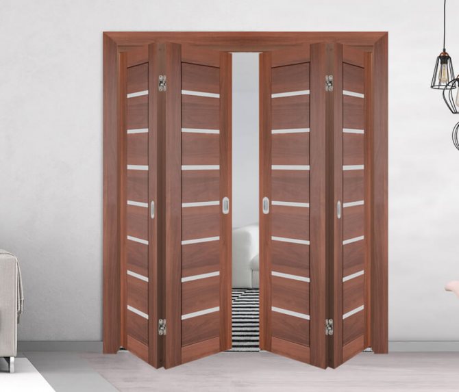 L'industrie du meuble moderne produit des portes de différents modèles. L'une des options est une porte escamotable. Ce modèle se compose de deux portes qui se plient en deux lors de son ouverture.