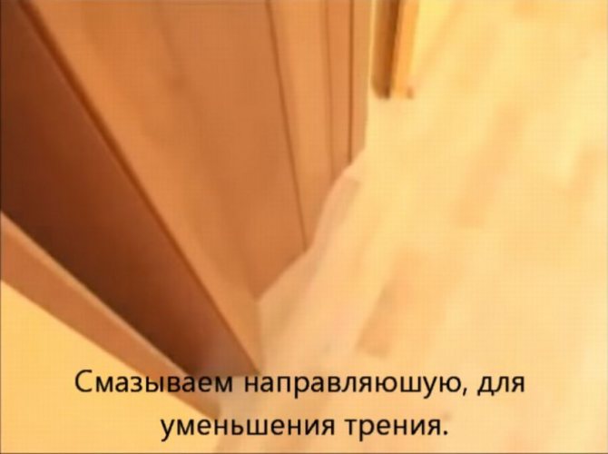 Vous souvenez-vous que le guide devait être fixé, pour l'instant, avec une seule vis, qui devait être placée au centre de la porte? Ainsi, maintenant, en raison d'une fixation aussi instable, vous devez déplier le guide et, une fois plié, installer le battant de porte dessus, puis le guide se déplie avec le battant de porte, dont une partie extrême est fixée sur l'axe inférieur . Eh bien, c'est tout, il ne reste plus qu'à fixer le rail en aluminium avec quelques vis supplémentaires, et à le lubrifier pour un meilleur glissement des rouleaux. Votre porte coulissante est prête, vous pouvez l'utiliser en toute sécurité!