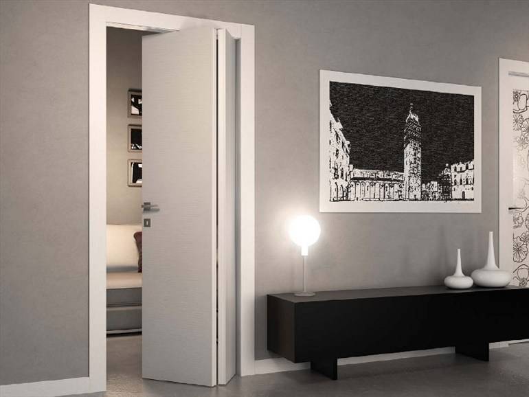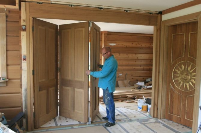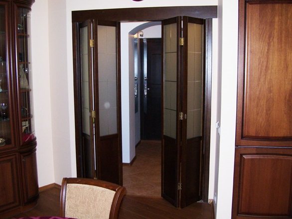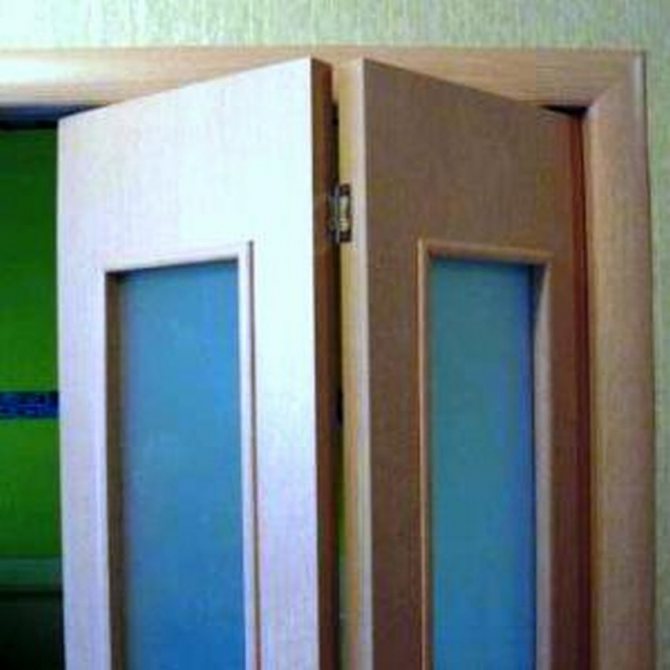 L'industrie moderne produit des portes d'une grande variété de designs. Le livre a deux rabats qui se plient en deux lorsqu'il est ouvert. Cette conception est une bouée de sauvetage pour les appartements dans lesquels les portes ont des dimensions minimales. Les portes pliantes sont libres de mouvement ou sont articulées.