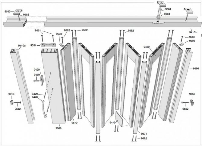 Tous les modèles de portes pliantes ont les mêmes éléments et composants dans leur appareil. À savoir: