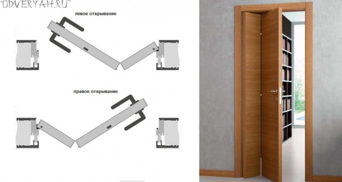 Le dispositif de cette porte intérieure est assez simple. La porte du livre est fixée sur un côté du bloc de porte, pour lequel ils utilisent des supports ou des charnières standard ordinaires.