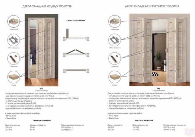 Pour qu'il n'y ait aucun problème lors de l'installation de la porte accordéon et qu'elle s'intègre harmonieusement dans l'ouverture et à l'intérieur de la pièce, il est nécessaire de faire le bon choix du modèle.