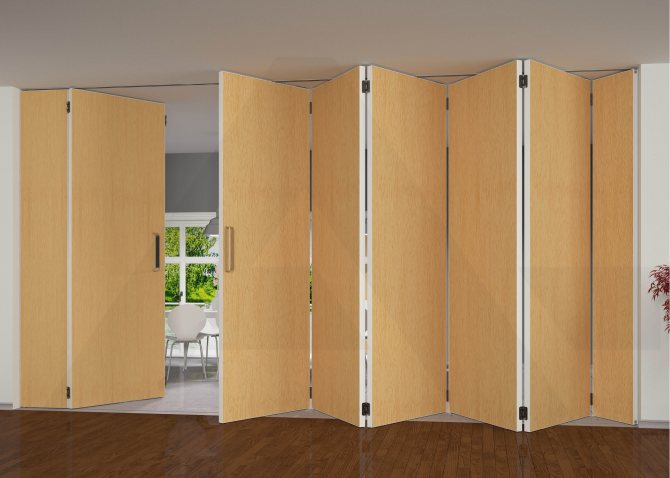 "Accordion" est une excellente option pour les bureaux et les appartements. Elles sont relativement peu coûteuses et, comme toute autre porte de compartiment, sont associées à une compacité.