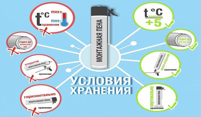Habituellement, le fabricant sur le cylindre de mousse de polyuréthane d'hiver indique que la température ambiante ne doit pas être inférieure à -10 degrés et pas supérieure à +30 degrés, et la température du cylindre lui-même doit être comprise entre +15 et +30 degrés.