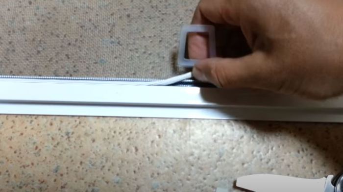 - Enroulez le cordon dans la rainure à l'aide d'un rouleau spécial ou d'un fin tournevis à boucle.