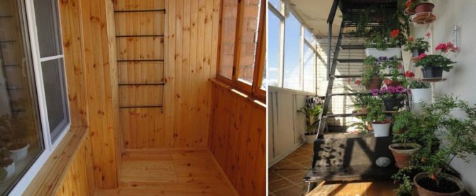 Plus la surface du balcon ou de la loggia est grande, plus la pièce peut être décorée: c'est dans les escaliers que vous pouvez installer des supports ajourés pour les fleurs, placer d'autres éléments décoratifs, suspendre des poches pour de petites choses.