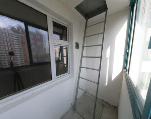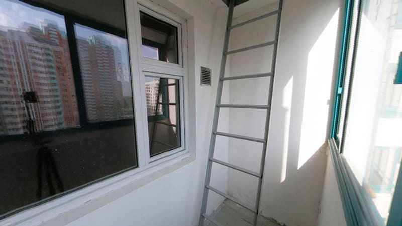 La sortie de secours est installée par les entreprises de construction conformément aux règles des exigences réglementaires et aux lois PPB 01-03, qui interdisent catégoriquement de descendre les escaliers. De plus, le vitrage des balcons est interdit, là où il y a une structure d'évacuation comme issue de secours en cas de situations imprévues.