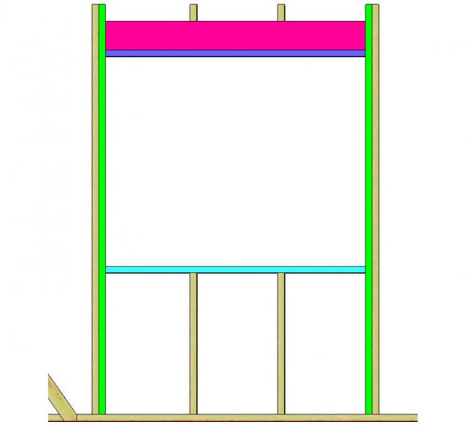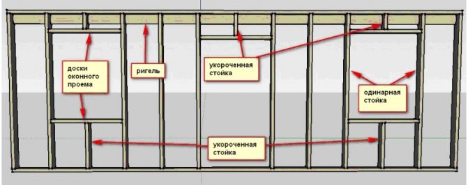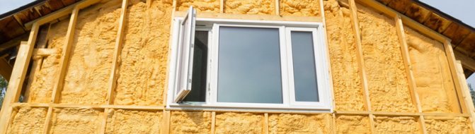 - La distance entre les poteaux de la maison à ossature. Cette distance doit être égale à la largeur de la laine minérale et de la mousse.S'il est nécessaire de le réduire, tous les calculs doivent être effectués avec soin et la distance entre la poutre de la fenêtre et le poteau d'angle doit être connue. Par exemple, prenons une distance de 400 cm. Nous devons placer les racks de telle sorte que la largeur des ouvertures soit de 120 cm, 120 cm, 120 cm et 25 cm. Il reste 5 centimètres, qui sont destinés au épaisseur de la crémaillère elle-même.
