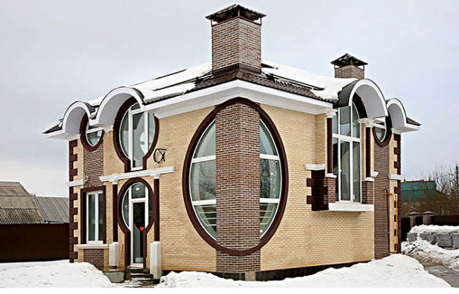 - Fenêtres rondes. Les fenêtres rondes ne feront pas que raviver, elles feront scintiller à la fois la maison et l'appartement de la ville avec des couleurs complètement nouvelles. La production de fenêtres rondes est très simple, il n'y aura donc pas de frais supplémentaires. Ces fenêtres sont une excellente solution pour les pièces situées sous le toit même de la maison.