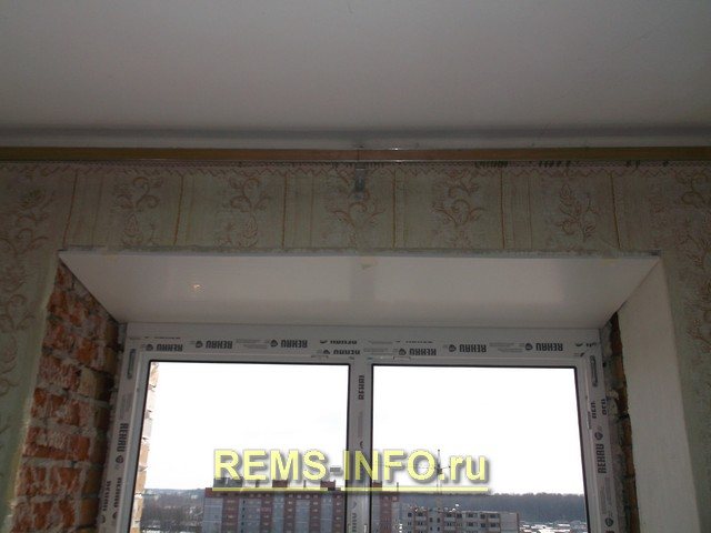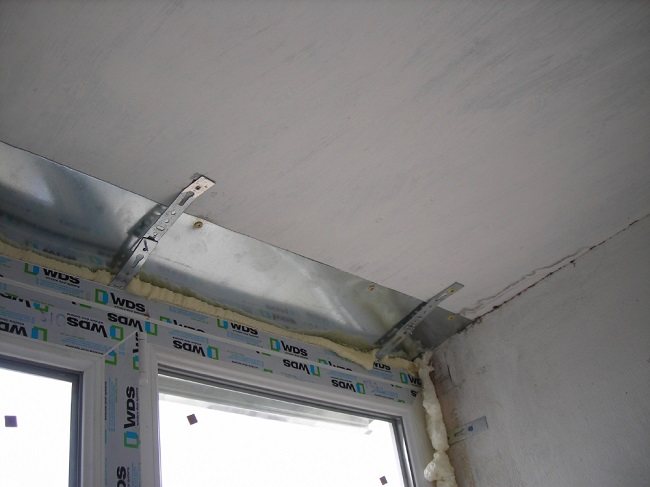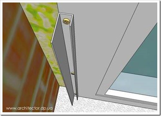 Un profil en forme de L est fixé perpendiculairement au plan de la fenêtre: la large étagère jouxte le mur de l'ouverture, l'étroite qui lui est adjacente - au cadre de la fenêtre, et l'étagère étroite opposée à la longue sert à masquer la crosse joint à l'endroit où le panneau de finition est adjacent.