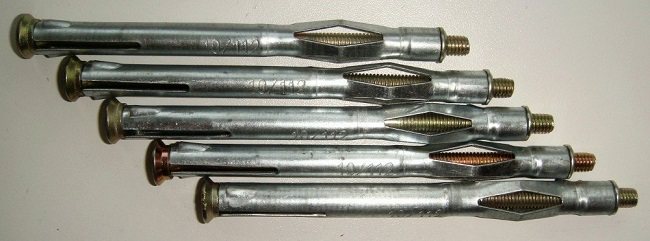 - Ancre classique. Se compose d'un manchon extérieur galvanisé, d'une vis Phillips et d'un manchon. Le principe de fonctionnement est le suivant: initialement la vis et une partie du manchon vissée sur celle-ci sont à l'intérieur du manchon, qui se dilate lorsque la vis tourne dans un certain sens, fixant ainsi l'ancrage dans le siège. Un ancrage régulier est excellent pour la fixation dans des matériaux denses (brique, béton, parpaing).