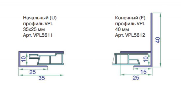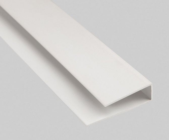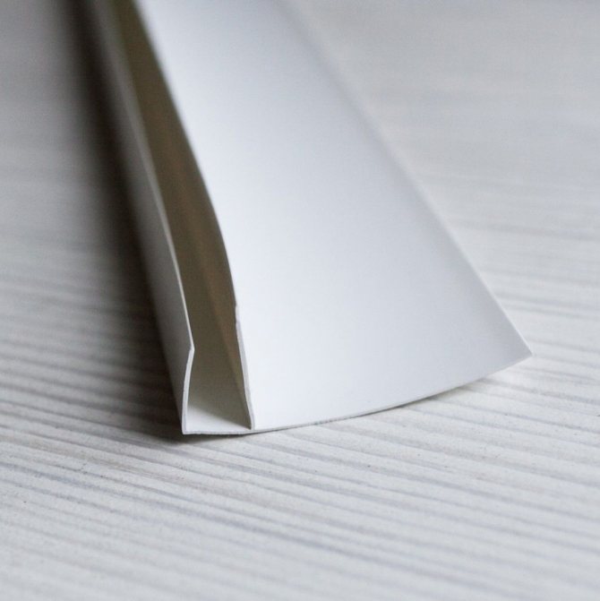 L'un des types de profilés en plastique les plus populaires. Ce profilé en PVC a la forme de la lettre F - il a une longue étagère et deux courtes, adjacentes à la longue d'un côté. À l'aide de profilés F, les pentes sont installées à partir d'une variété de matériaux: