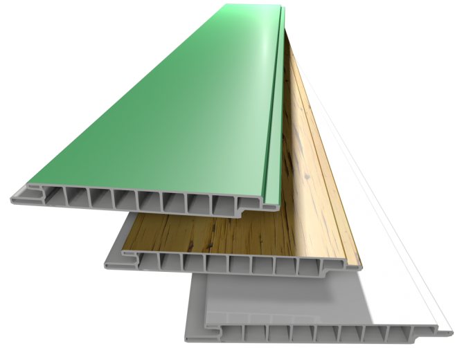 Le premier est le panneau supérieur. Pour couper un morceau de la bonne taille, vous devez tout mesurer soigneusement. La longueur intérieure et extérieure du segment et sa largeur sont mesurées. Lors de l'application des marquages, il est nécessaire de s'assurer que exactement le côté du plastique sur lequel la découpe a été faite sera inséré dans le profil. Découpez avec une scie circulaire ou une scie sauteuse selon le marquage. Si aucun n'est disponible, une scie à métaux à dents fines peut être utilisée. Installez le panneau fini dans le profil de départ. L'autre bord de la feuille est fixé avec des vis autotaraudeuses aux lattes du lattage. Afin de ne pas gâcher l'apparence, les vis doivent être serrées à un angle dans la couche supérieure du panneau en plastique avec un pas de 30 à 40 mm. De même, les panneaux supérieurs sont fixés aux panneaux latéraux et sont également vissés aux rails.