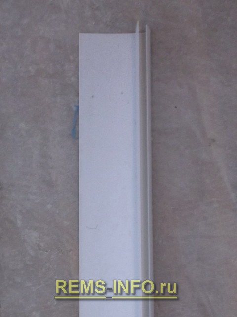 La dernière étape sera l'installation du profil final, platband. Bande en plastique en forme de F. Il a un caractère décoratif et donne également une rigidité supplémentaire à l'ensemble de la structure. Nous mesurons et coupons le profil à la longueur souhaitée. Le profil est joint l'un à l'autre à un angle de 45 °. Dans les endroits où le profil reposera sur les vis, il est nécessaire de faire une incision sur la plaque longitudinale intérieure et de retirer la partie inutile. Le profil F est solidement installé à l'extrémité de la pente et solidement fixé à l'intérieur. Tous les joints obtenus lors de l'installation doivent être traités avec un scellant blanc, et l'excédent doit être enlevé avec une spatule en caoutchouc ou un morceau de plastique.