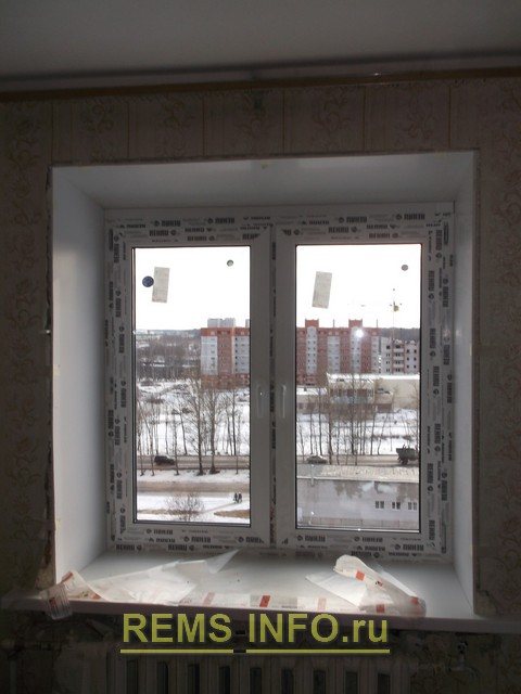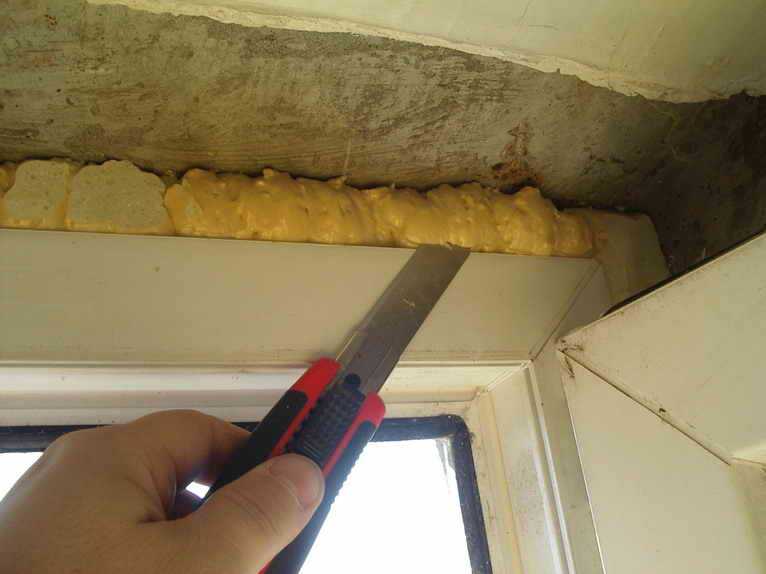 - Coupez l'excès de mousse entre le profil de la fenêtre et le mur, et lors de l'installation des fenêtres, vous devez avoir un ruban pare-vapeur de l'intérieur de la pièce et un ruban étanche de l'extérieur.