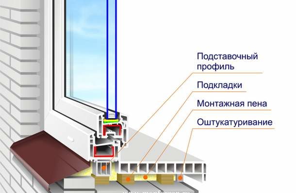 Les caractéristiques architecturales des bâtiments modernes et anciens sont telles que dans la zone du bord inférieur de la fenêtre, l'air est pompé sous le reflux extérieur. À l'époque soviétique, cela était combattu en plaçant des radiateurs de chauffage directement sous les fenêtres. Maintenant, ils essaient souvent d'être retirés des endroits importants, une attention particulière doit donc être accordée à la zone du rebord de la fenêtre et d'exclure la possibilité que des ponts froids y apparaissent. Pour résoudre ce problème, l'installation du profil de support est effectuée.