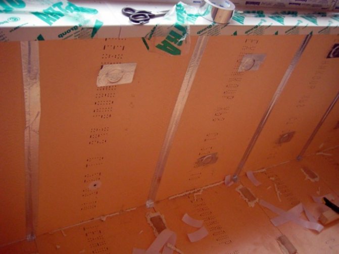 - Les coutures peuvent être recouvertes d'une couche de mastic, des bandes de plastique peuvent être installées. Lors de l'isolation des parois latérales, aucune finition n'est requise à ce stade.
