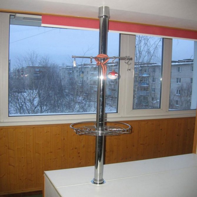 Pour installer un plateau avec un tuyau vertical du sol au plafond, il est nécessaire de percer un trou dans la surface, d'y insérer le tuyau et de le fixer à la hauteur requise. Ensuite, vous devez fixer la structure au mur à l'aide de supports et fixer le tuyau. S'il y a des armoires ou des étagères supplémentaires en dessous, elles doivent être assemblées immédiatement.