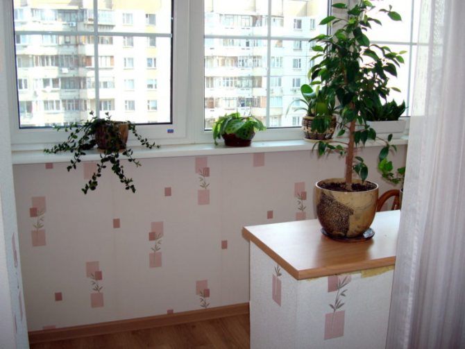 Sur la photo - un plateau en aggloméré laminé sur une loggia sous la commande