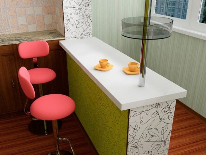Sur la photo - un dessus de table avec un minibar et une surface de travail pour une loggia Les dessus de table sont activement utilisés à l'intérieur des balcons et des loggias. Ils font partie intégrante d'espaces interconnectés et peuvent remplir diverses fonctions.