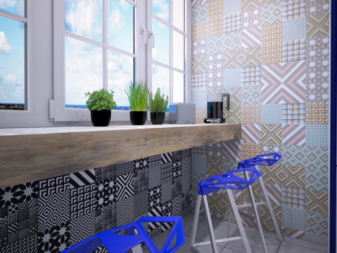 Par exemple, un comptoir de bar transforme un balcon en un bar à part entière, un comptoir en aggloméré stratifié installé entre la loggia et la cuisine peut servir de plan de travail ou de table à manger.