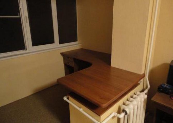 La photo montre un exemple de comptoir fonctionnel sur un balcon au lieu d'un bloc de balcon