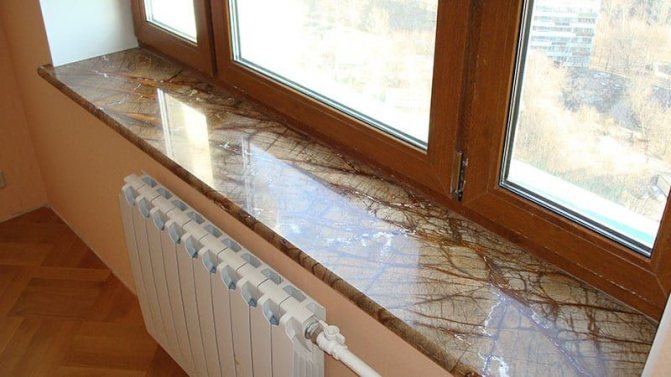 Le marbre naturel ou le granit est considéré comme un matériau luxueux pour un rebord de fenêtre. La pierre naturelle semble riche, solide et texturée.