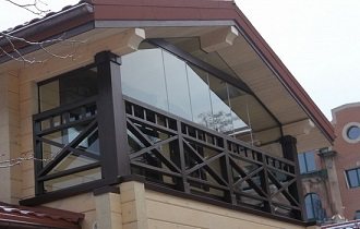 - Vitrage de balcons dans une maison en bois ou en brique.