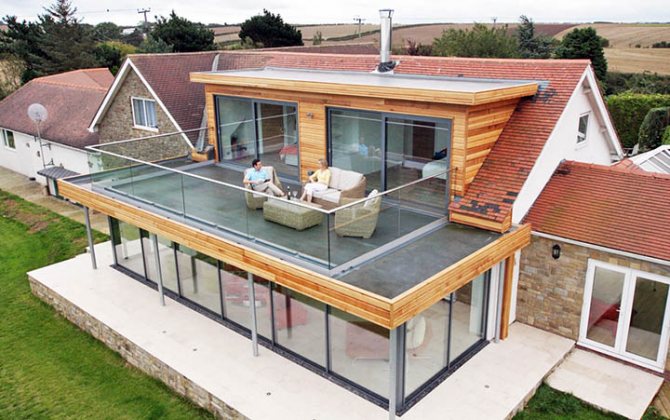 - Une extension de balcon est un espace supplémentaire qui peut être utilisé comme lieu de détente, de divertissement ou même d'espace de travail. Si le balcon est installé au-dessus de la terrasse, cela aidera à diviser visuellement la maison en deux parties, ce qui augmentera visuellement le volume de tout le bâtiment.