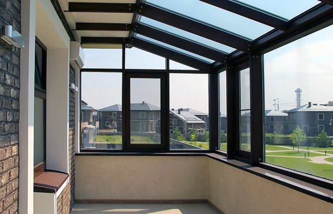 La zone vitrée est protégée des intempéries, des bruits parasites et des insectes gênants. Pour une conception inhabituelle, esthétique et originale des structures de façade, différents types de vitrages peuvent être utilisés: panoramique, vitrail, partiel.