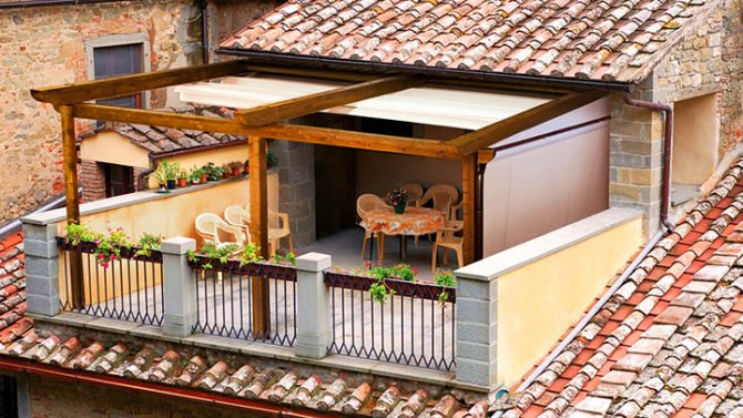 - Éclairage. Si la lumière ne pénètre pas suffisamment dans la maison, le balcon aidera à créer un coin bien éclairé. Pour éviter une exposition directe aux rayons UV, un toit ou un auvent peut être installé.