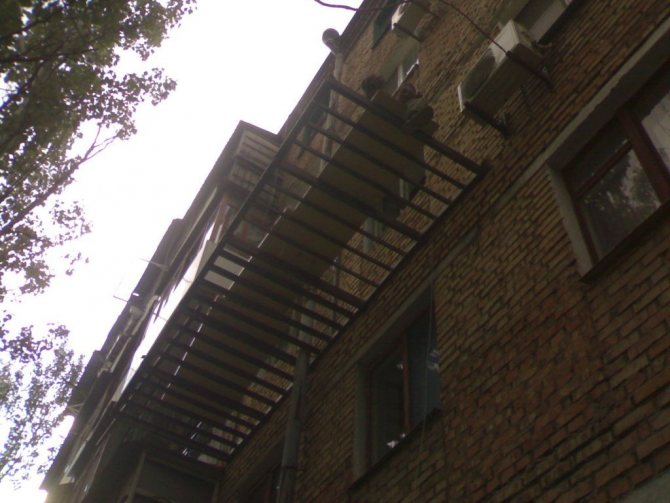 La visière nécessite également une attention, sans laquelle il est difficile d'imaginer un balcon ouvert. Depuis la présence d'une visière offre une protection contre la pluie, les intempéries, le soleil chaud. Il doit être plus grand que le balcon lui-même et installé à un certain angle.