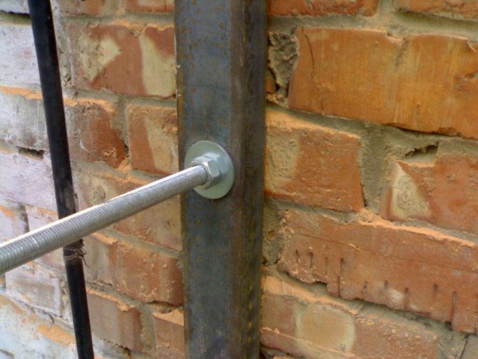 - La fiabilité d'une telle structure dépend directement de l'épaisseur du mur de la maison, car les structures de support sont encastrées dans le mur. Dans le cas où le mur ne se caractérise pas par une résistance accrue, il est nécessaire d'installer des supports supplémentaires.