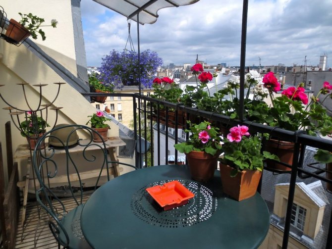 Un petit balcon triangulaire situé sous le toit du bâtiment semble inhabituel et attrayant. Une telle pièce peut être utilisée avec succès pour organiser un coin fleuri.