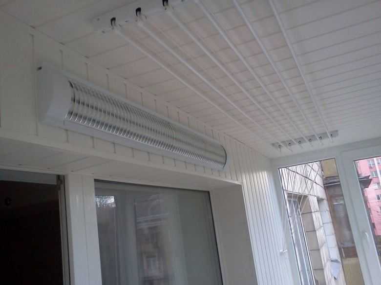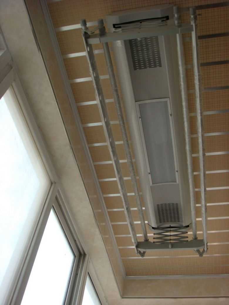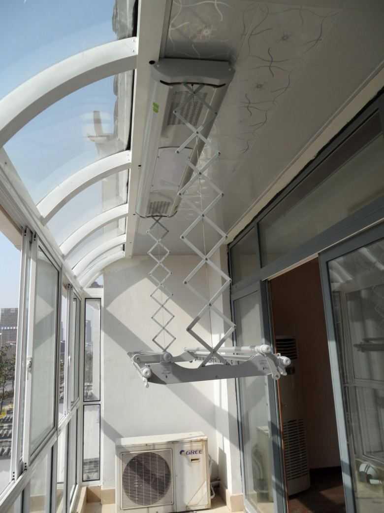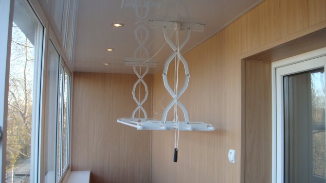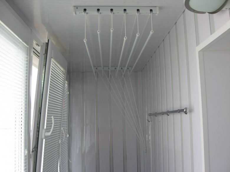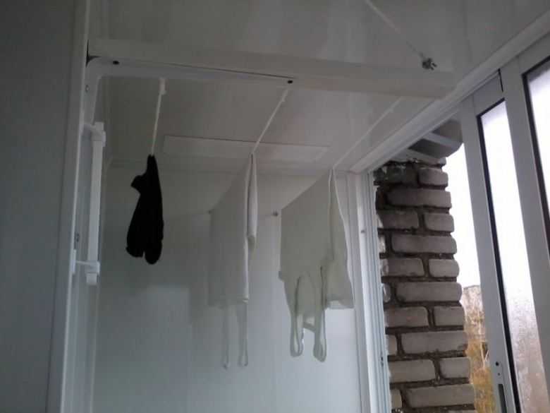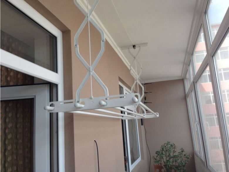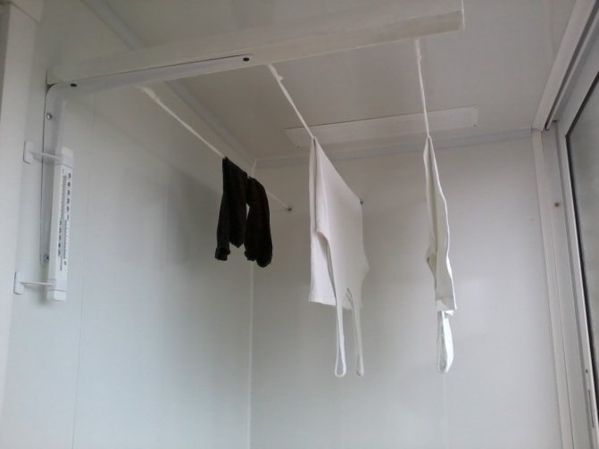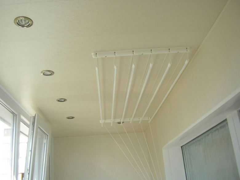 Le sèche-linge sur le balcon au plafond est également idéal pour les petits balcons et les loggias.