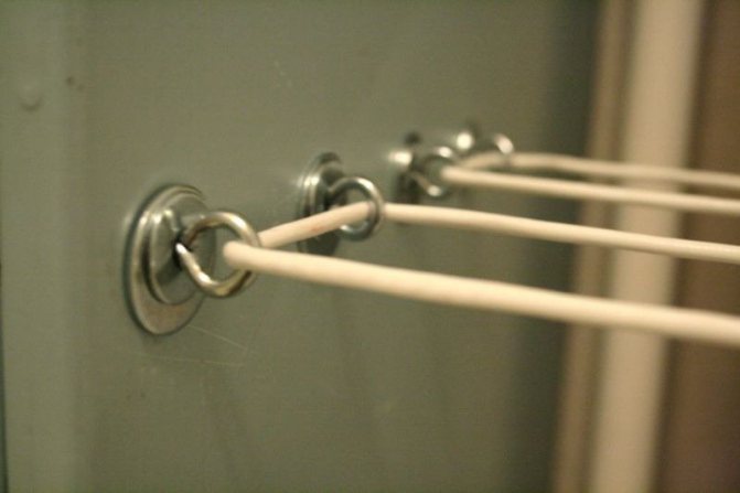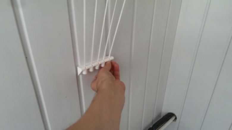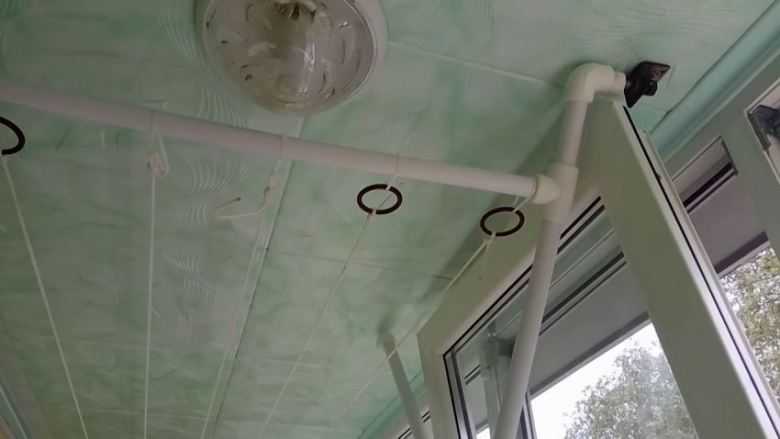 Vous pouvez aller de la manière la plus facile ou la plus difficile. Si une dame envisage de faire l'installation sans aide, elle peut attacher le cordon sur les parties opposées de la balustrade ou du treillis du balcon. À l'époque soviétique, quand il n'était pas habituel de faire du vitrage, c'était exactement ce qu'ils faisaient.