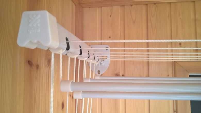Les séchoirs à suspension indépendante sont un peu plus difficiles à installer. Tous les échelons sont attachés à deux lattes au plafond, mais une corde va à chacun d'eux, ce qui vous permet d'abaisser / soulever les tiges pour suspendre les vêtements. Ainsi, lors de l'installation, en plus d'installer les barres transversales au plafond, il est nécessaire de fixer une barre sur le mur voisin, sur lequel les cordes sont fixées. Les rails de ce type de séchoir au plafond peuvent être en plastique, en acier émaillé en poudre (Gimi) ou en aluminium (Liana). Vous pouvez trouver des poutres en bois d'autres fabricants, mais celles énumérées ci-dessus sont représentées par un grand nombre de modèles.