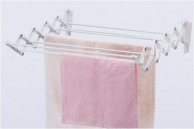 - ordinaire; Le séchage des choses sur eux se fait de manière naturelle. Ils sont abordables, faciles à installer et à utiliser. L'inconvénient de ces modèles est le long temps de séchage des choses sur les balcons non chauffés pendant les périodes automne-hiver.