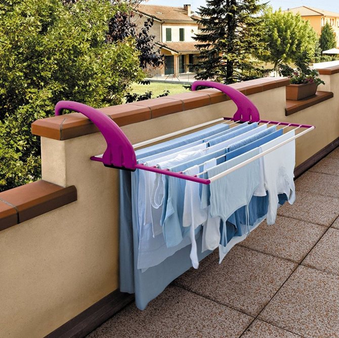 Si la taille du balcon le permet, vous pouvez utiliser un simple séchoir pliant, qui ne nécessite pas d'installation.