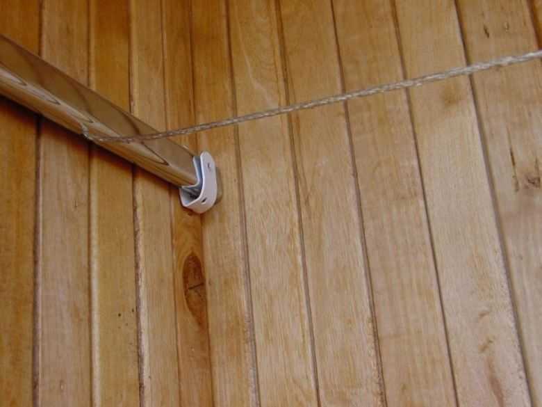 Lors du choix d'un site d'installation, il est nécessaire de vérifier la fiabilité des murs ou du plafond - les surfaces sur lesquelles les supports seront fixés. Si le plafond est recouvert de panneaux en plastique, vous devrez les retirer et installer des hypothèques sur des barres de bois. La finition en bois peut bien supporter le poids du vêtement avec le linge suspendu, mais elle peut également être renforcée si nécessaire.