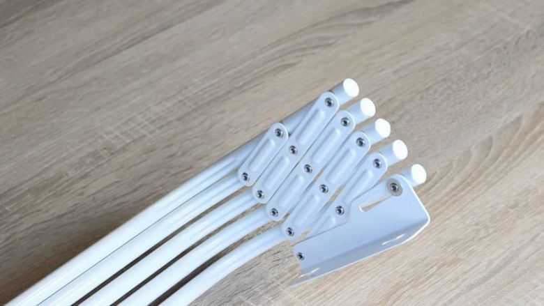 - nombre de tiges et leur longueur; Détermine la capacité de sécher de grandes quantités de vêtements en même temps. Pour une famille de 1 à 2 personnes, un séchoir à 5 tiges courtes suffit. Pour une grande famille avec enfants, un séchoir avec 6 tiges ou plus de longueur moyenne et longue convient.