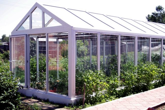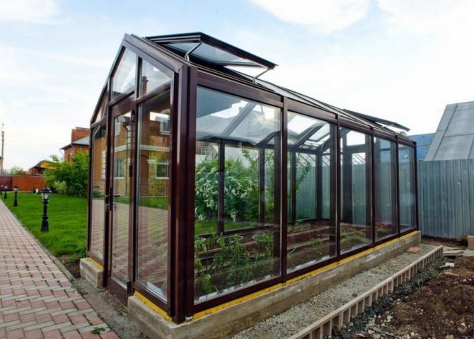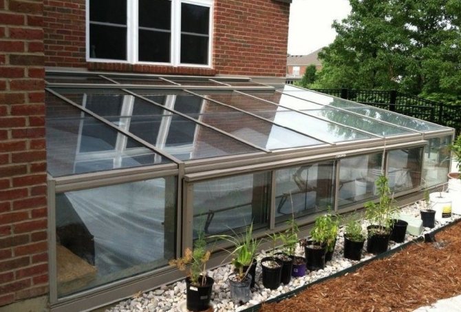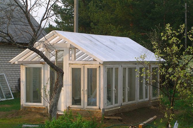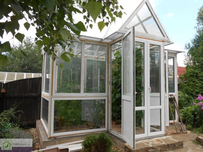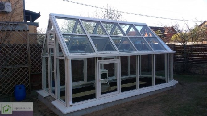 Vous pouvez faire une serre de fenêtres à double vitrage sous la forme d'une maison d'une hauteur de 2300 mm
