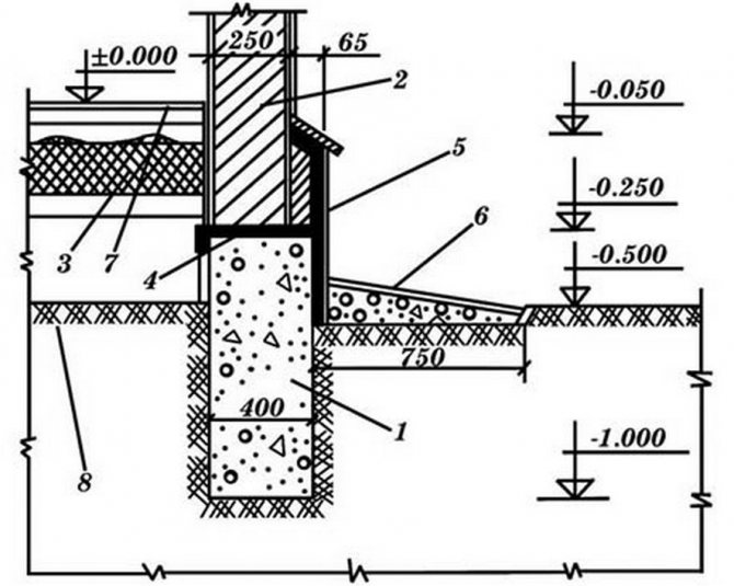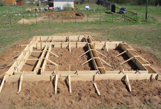 - Des morceaux de bois sont disposés le long du périmètre de la fondation, après avoir posé l'imperméabilisation avant celle-ci. Vous pouvez utiliser des morceaux de matériau de toiture.