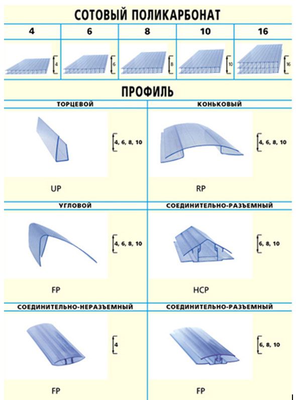Variétés de profilés en polycarbonate alvéolaire