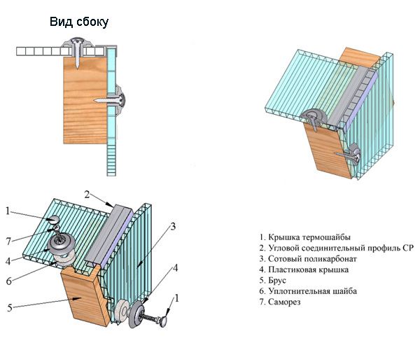 Schéma de montage du polycarbonate alvéolaire à l'aide d'une rondelle thermique